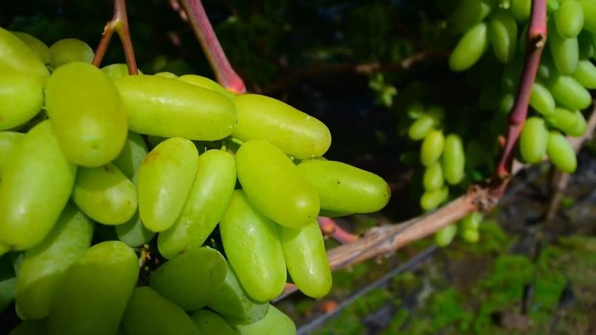 Виноград очень сладкий. Мякоть настолько плотная, что слышится характерный хруст при раскусывании. В ягоде 1-2 семени.