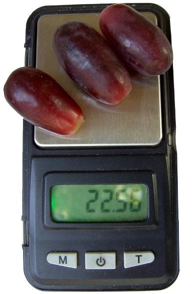 Ягода крупная, удлиненная, в форме капли или грушевидная. На кончике некоторых ягод выделяется явная вмятина с углублением внутрь. Длина ягоды до 4 см и весом до 12 грамм.